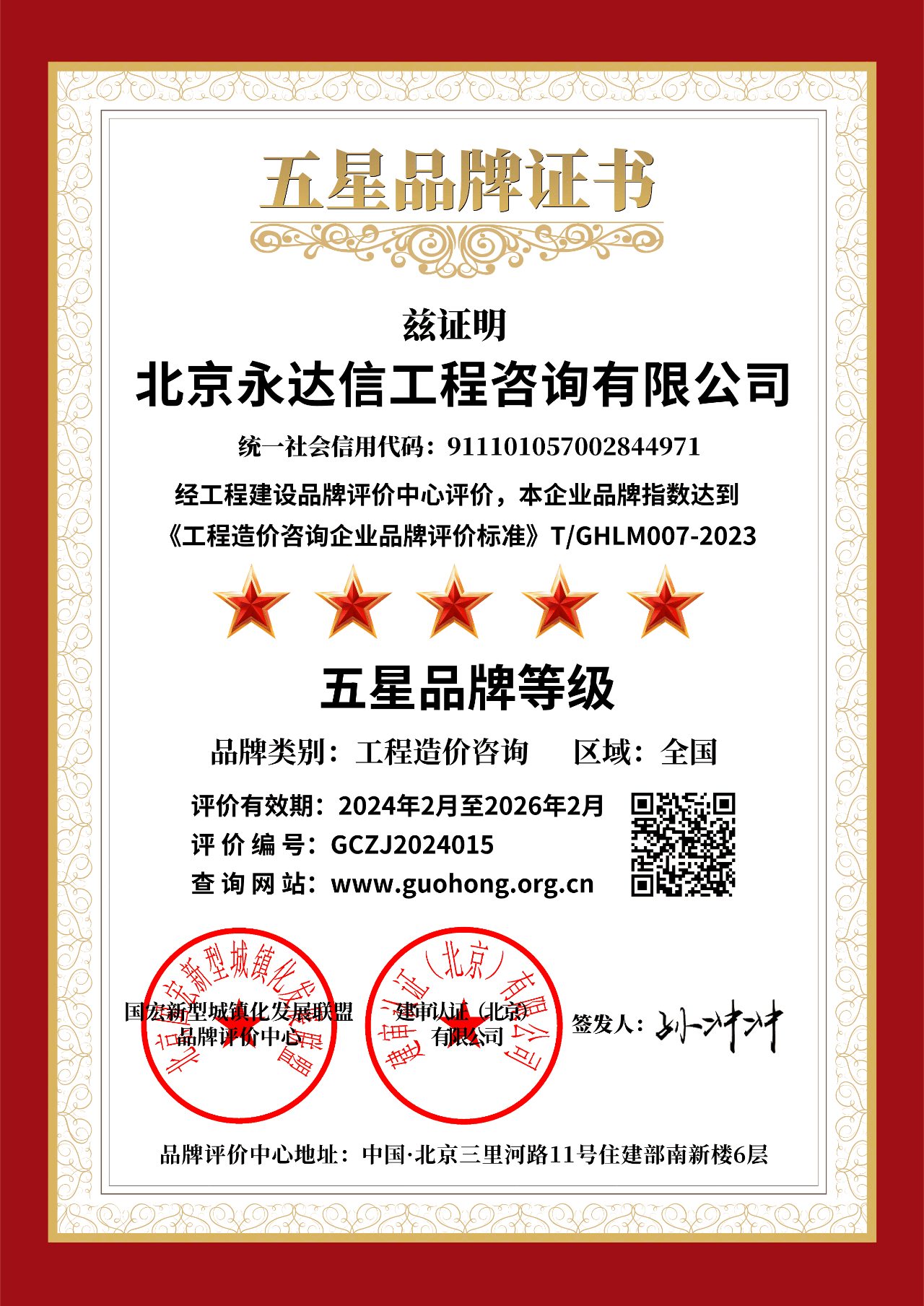 2024年2月26日,由工程建设品牌评价中心发布,今年会经过 《工程建设企业品牌评价系列标准》(《T/GHLM007-2023 工程造价咨询企业品牌评价标准》 评选后 ,“ 荣获工程造价咨询企业五星品牌荣誉称号 ”,工程建设五星品牌企业是工程建设领域企业品牌的最高评价,标志着被授予企业在工程建设的专业品类中属于全国一流品牌,是知名度、美誉度、忠诚度最高的品牌,是值得客户信赖、客户放心的品牌。(信息摘自 工程建设品牌评价中心