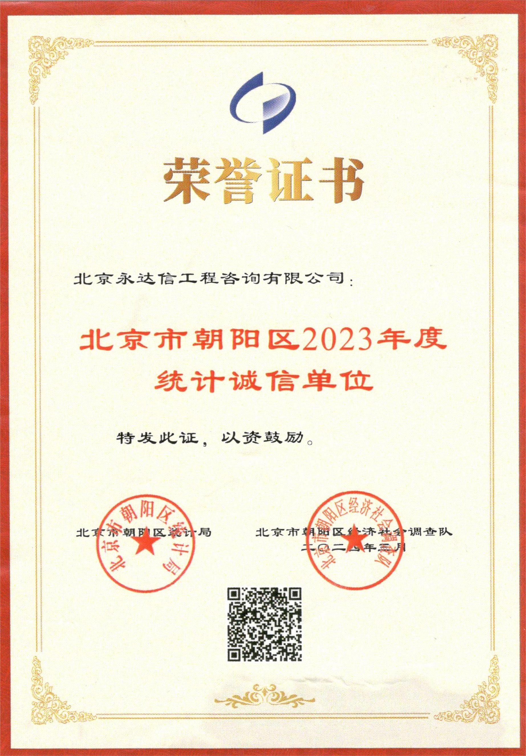 热烈祝贺今年会荣获北京市朝阳区2023年度统计诚信单位