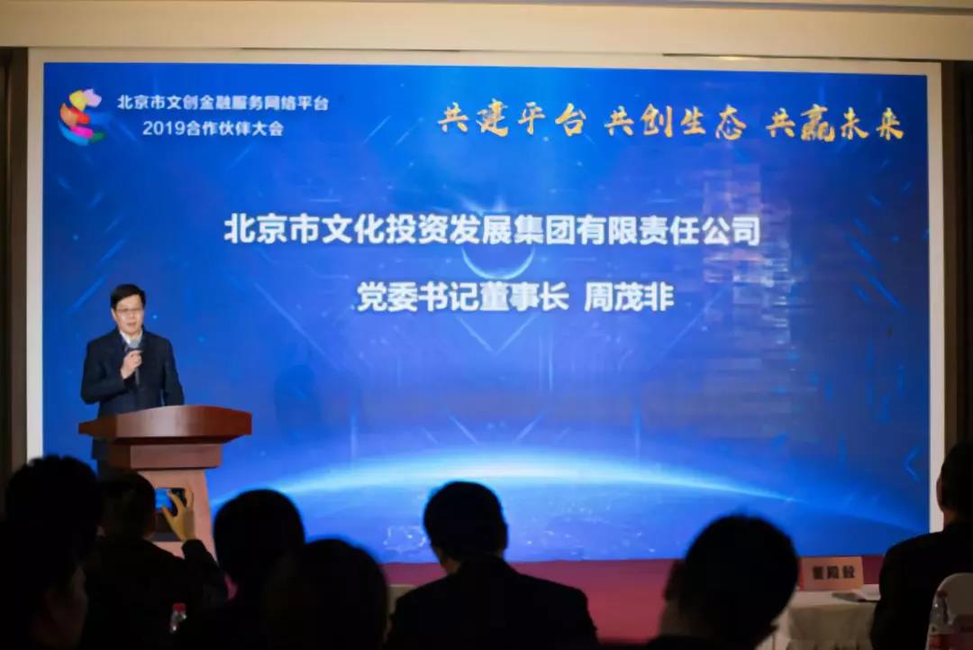 2019年2月26日上午,北京市文创金融服务网络平台(以下简称“文创金服平台”或“平台”)2019年度合作伙伴大会在北京市文化创意产业展示中心隆重召开。北京市国有文化资产监督管理办公室(以下简称“市文资办”)副主任董殿毅、北京市文化投资发展有限责任公司(以下简称“市文投”)党委书记、董事长周茂非、全国文化金融中心联盟、各区文化创意产业管理机构和北京市文化科技融资租赁股份有限公司(以下简称“文化租赁”)有关领导以及文创金服平台各家合作伙伴等共百余名嘉宾参加了会议。