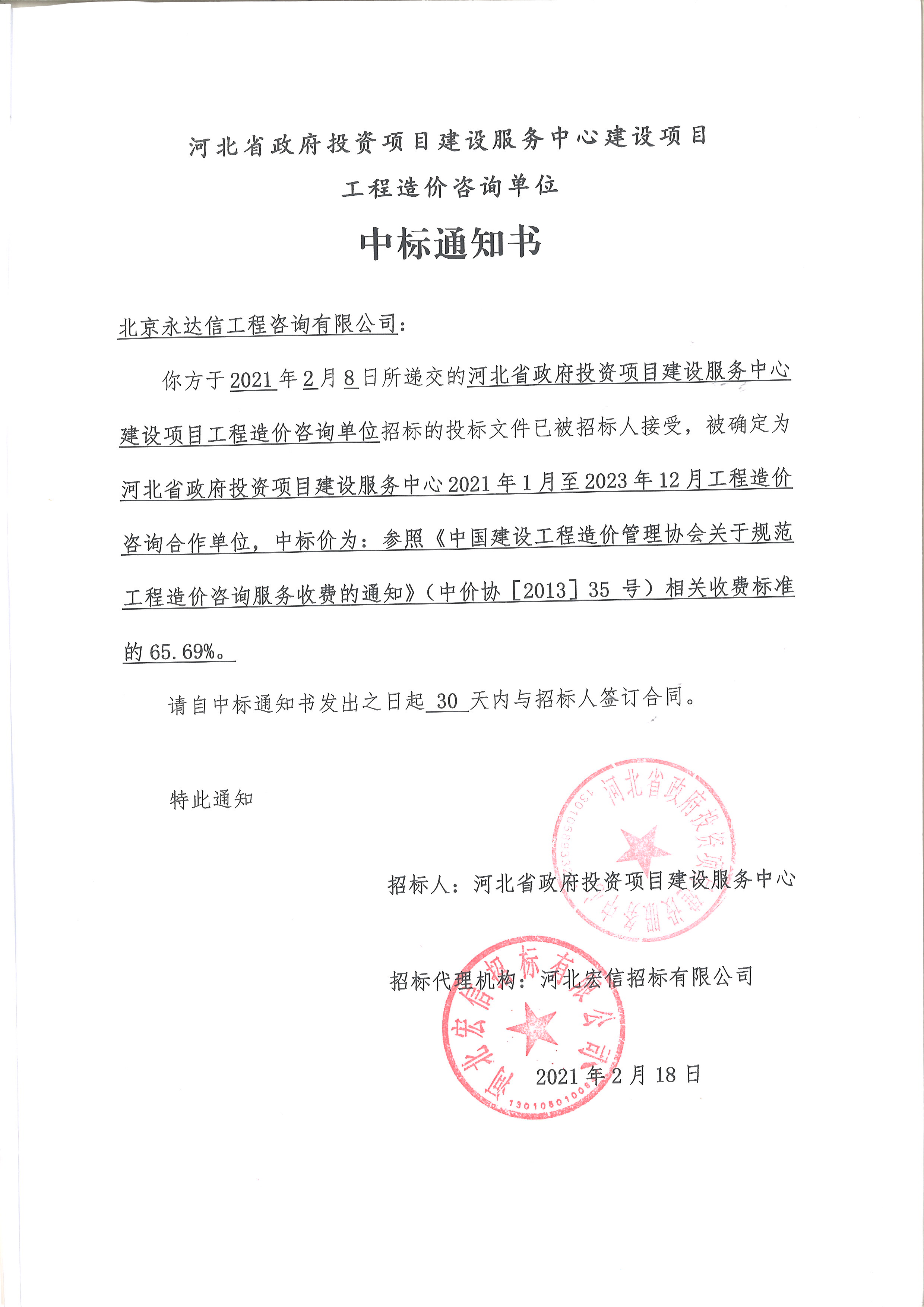 今年会中选成为河北省政府投资项目建设服务中心建设项目工程造价咨询单位