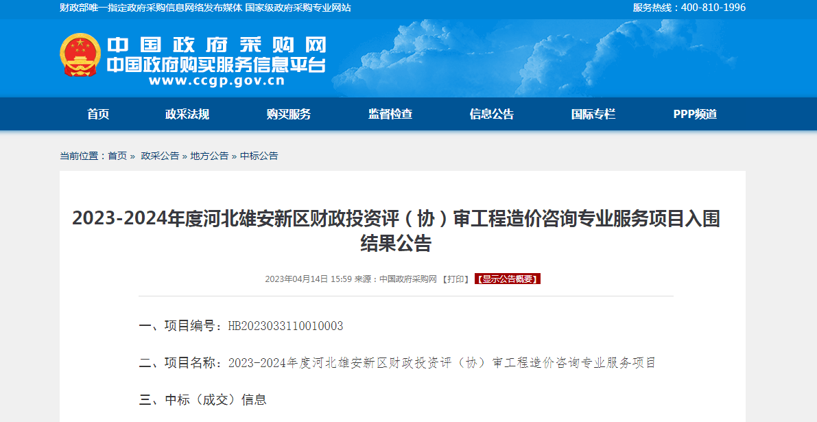 今年会入选2023-2024年度河北雄安新区财政投资评(协)审工程造价咨询专业服务项目机构库